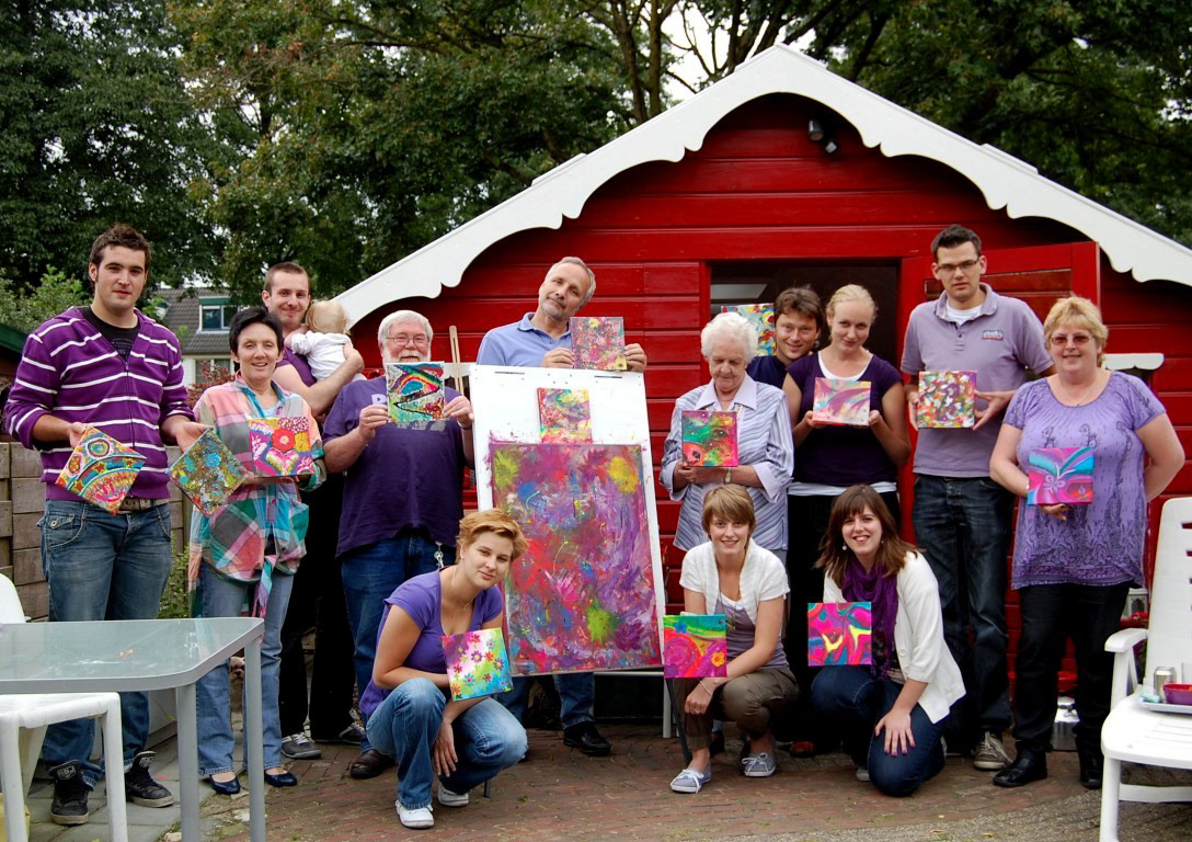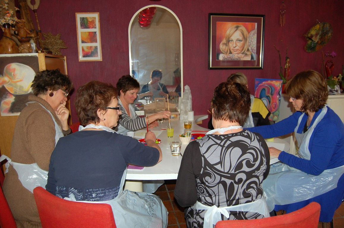 Momenteel vinden de workshops plaats in mijn vrolijke bonte huiskamer en/of tuin, maar na verloop van tijd ook in mijn atelier "De Quast" achter in de tuin!